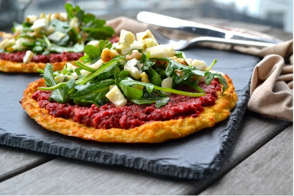 1. Beet Pesto Cauliflower Pizza with Greens